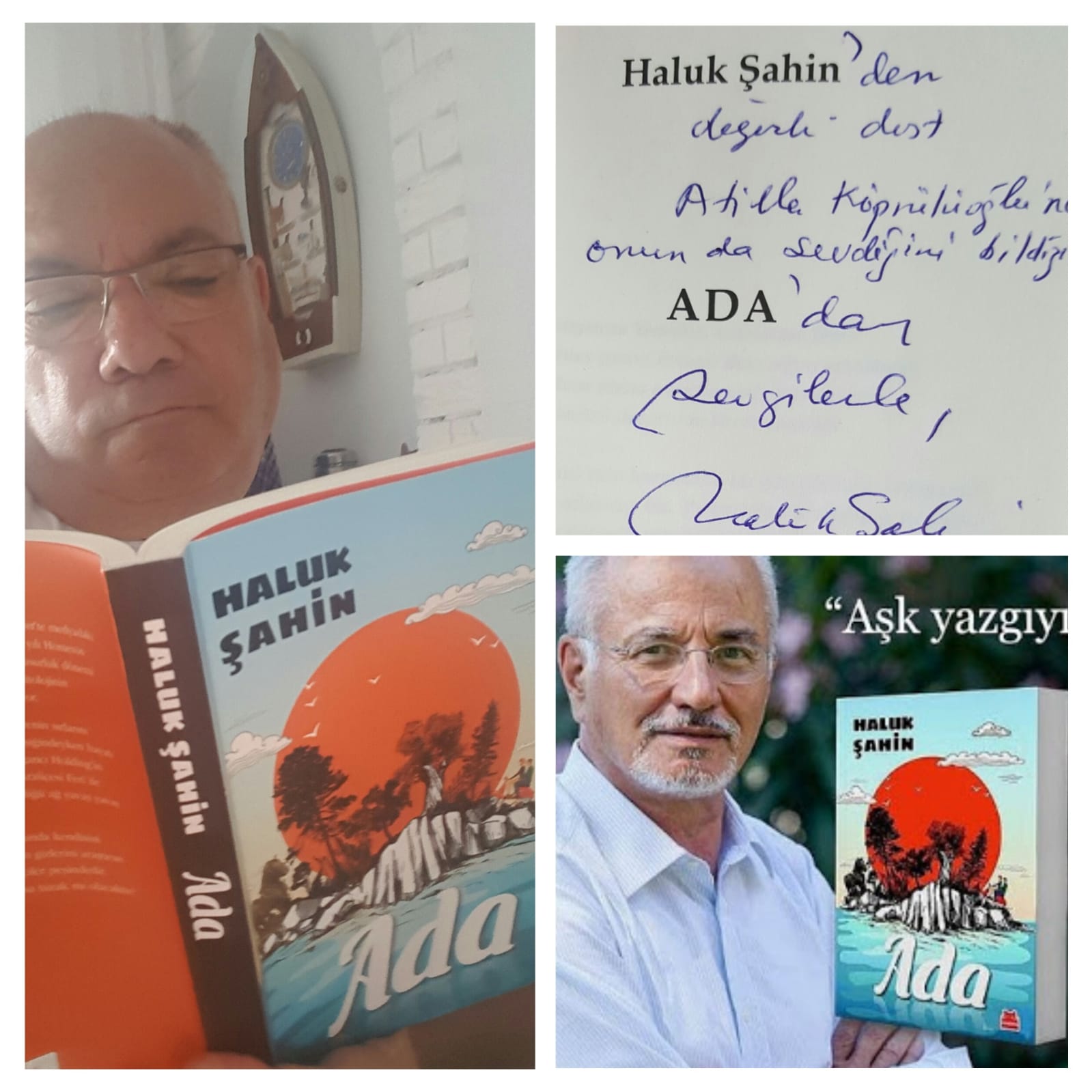 Değerli Hocam, ‘’Hâluk Şahin’den değerli dost Atillâ Köprülüoğlu’na onun da sevdiğini bildiğim Ada’dan sevgilerle-2018 Bozcaada’’yazıp imzalamış kitabını...
