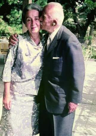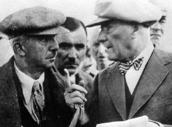 Yanında, beyaz şapkasıyla eşi Mevhibe İnönü. Tam bir Avrupalı çiftti.