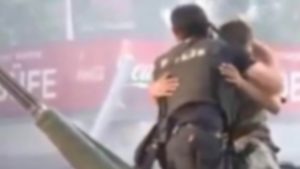 O geceden bana kalan bir asker ile polisin sarılmış görüntüsü.