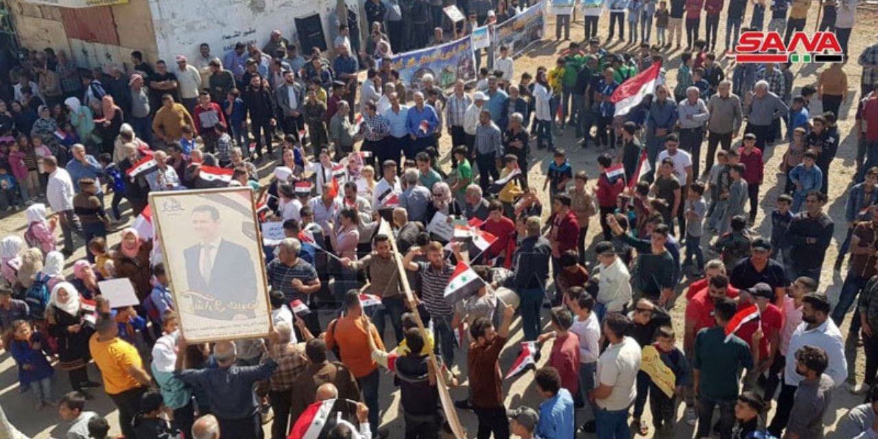 Protestolarda yerel halkın, "Suriye topraklarının birliğine bağlılıklarını ve Suriye'yi bölmeyi amaçlayan saldırgan planları reddettikleri" belirtilirken, "Suriye Arap Ordusu'na olan güvenlerini, birlikteliklerini ve yürüttüğü savaşlara desteklerini" ifade ettikleri kaydedildi.