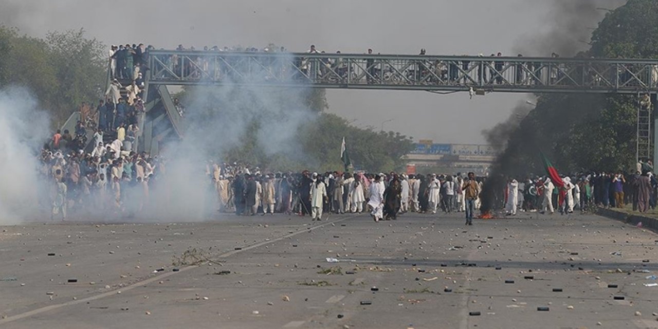 Bunun üzerine Pencap'ın farklı bölgelerinde barikatları aşmak isteyen Han destekçileri ile polis arasında çatışma yaşandı. Polis, Pencap'ın en büyük kenti Lahor'ın farklı noktalarında toplanan Han'ın lideri olduğu Pakistan Adalet Hareketi Partisi (PTI) taraftarlarını dağıtmak için göz yaşartıcı gaz kullandı. PTI çalışanları da polise taş atarak karşılık verdi.