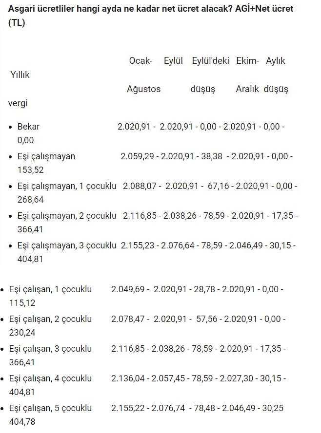 ASGARİ ÜCRET AGİ İLE BİRLİKTE 2.020.91 TL
