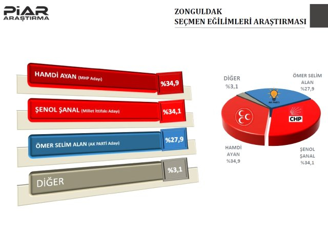 CHP'nin elinde bulunan Zonguldak'ta MHP adayı Hamdi Ayan, yüzde 34,9'luk oy oranı ile az farkla önde görünüyor.