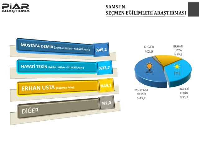 Samsun'da AKPa adayı Mustafa Demir, yüzde 45,2'lik oy oranı ile yarışı önde götürüyor.