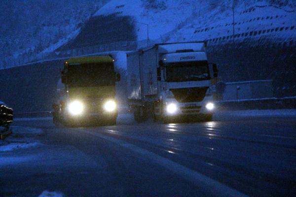Güzergahın bazı kesimlerinde 3 şeritli yol, tamamen beyaza büründü. Bazı bölümlerde ise yolun sol şeridi, kar nedeniyle trafiğe kapandı.