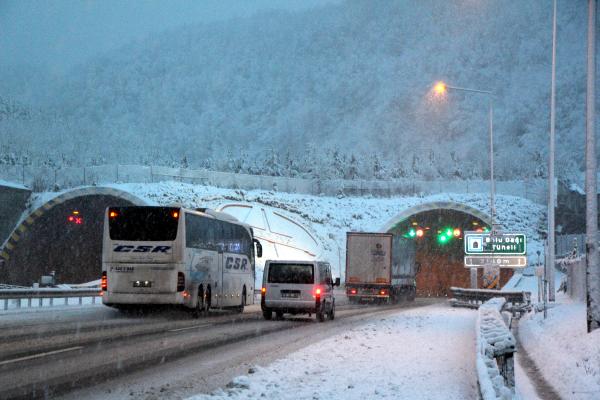 TEM ve D-100 yolunun Bolu Dağı geçişinde, sabaha karşı başlayan kar yağışı, sabahın ilk saatlerinde etkisini artırarak, devam etti.