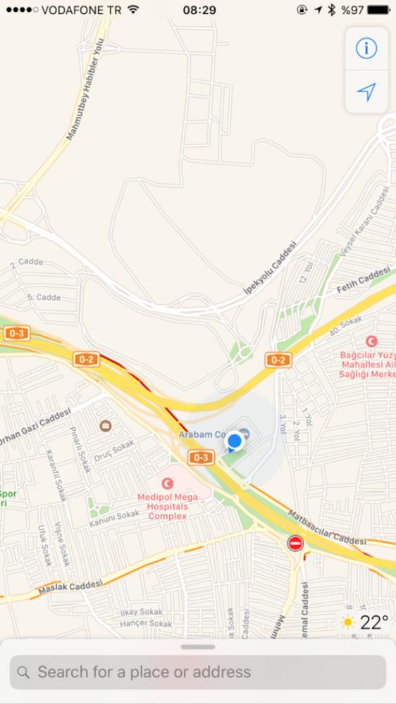 Apple Maps uygulamasını açın; hemen haritanın sağ alt kısmındaki hava durumu ibaresinin üzerine sert basın.