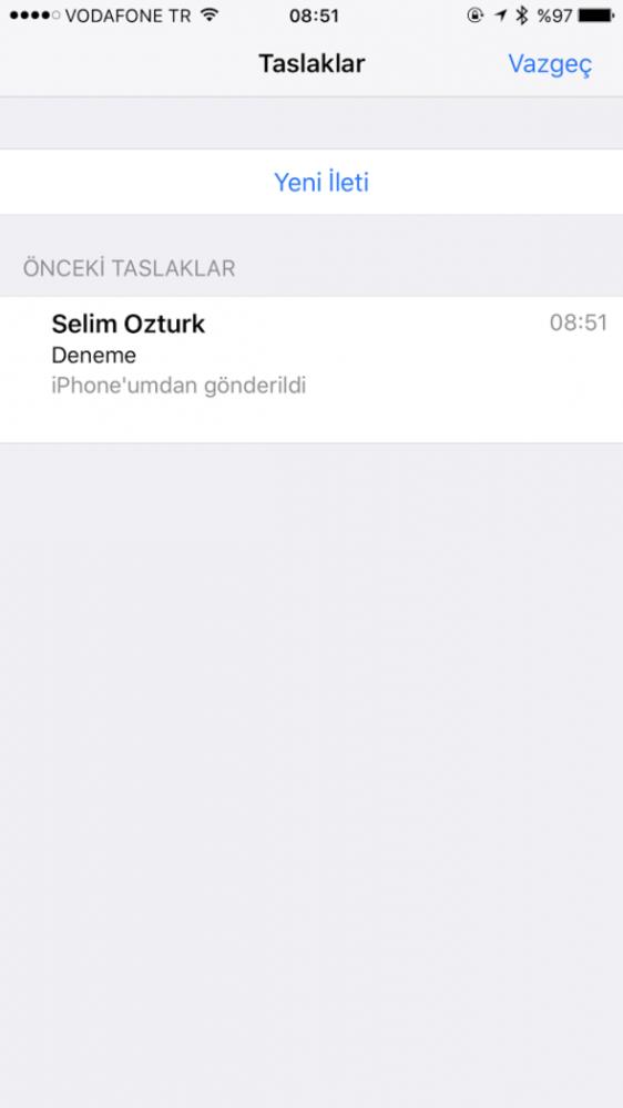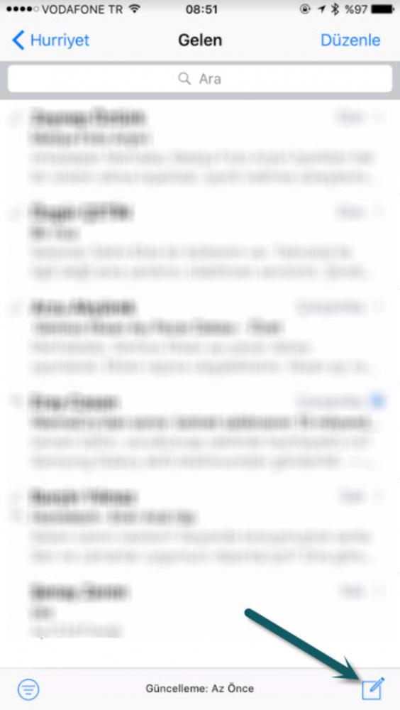 Yeni e-mail atarken dokunduğunuz ve sağ alt köşede bulunan Yeni Mesaj simgesine uzun süre dokunursanız bakın ne oluyor?