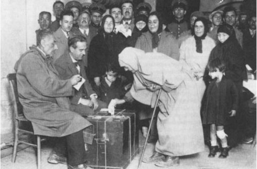İlki 1930'da gerçekleştirilen Mahalli İdareler Genel Seçimleri'nde bir oy kullanma anı...
