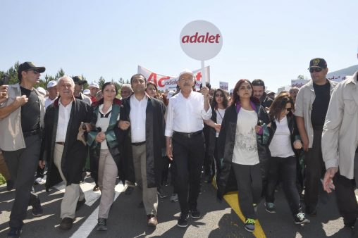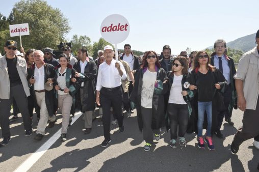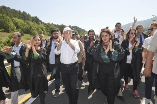 CHP Genel Başkanı Kemal Kılıçdaroğlu, adalet yürüyüşünün 10.gününe avukatlar eşliğinde başladı. İstanbul Barosu'ndan avukat cübbeleriyle yürüyüşe katıldı.