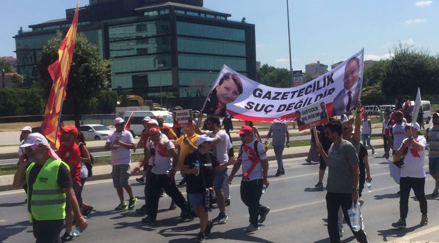 Kılıçdaroğlu yürüyüş sırasında "Tutuklu gazetecilere selam söyleyin, onların adaleti için de yürüyoruz" dedi. Tutuklu gazetecilerin arkadaşları ve eşleri de Kılıçdaroğlu'na teşekkür etti.
