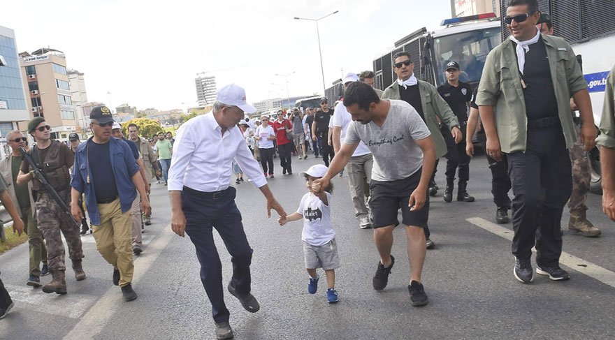 E-5 boyunca yürüyen Kılıçdaroğlu bir kız çocuğunu bir süre kucağında taşıdı. Kılıçdaroğlu Pendik Kaynarca’dan itibaren sahil yoluna indi. Kılıçdaroğlu Pendik’ten sahile inerken arkasındaki kalabalık Tuzla’ya kadar uzandı. Bu sırada Kılıçdaroğlu’nun yanına koruma müdürünü çağırarak atılan bazı sloganlardan duyduğu rahatsızlığı iletti.