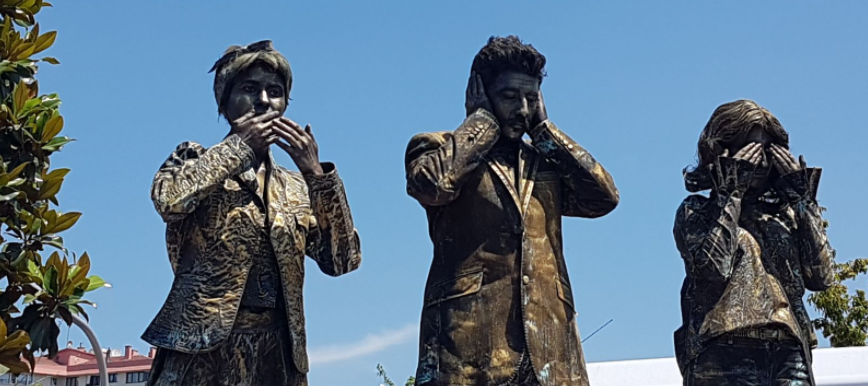 Mola alanına girişte adaleti simgeleyen cansız mankenler yer aldı.