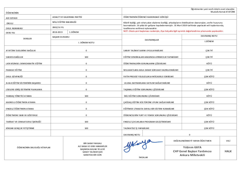 CHP Genel Başkan Yardımcısı Yıldırım Kaya öğrencilerin karne aldığı bu günde, CHP Genel Merkezinde basın toplantısı yaptı ve AKP’ye eğitim politikalarına ilişkin karnesini verdi.