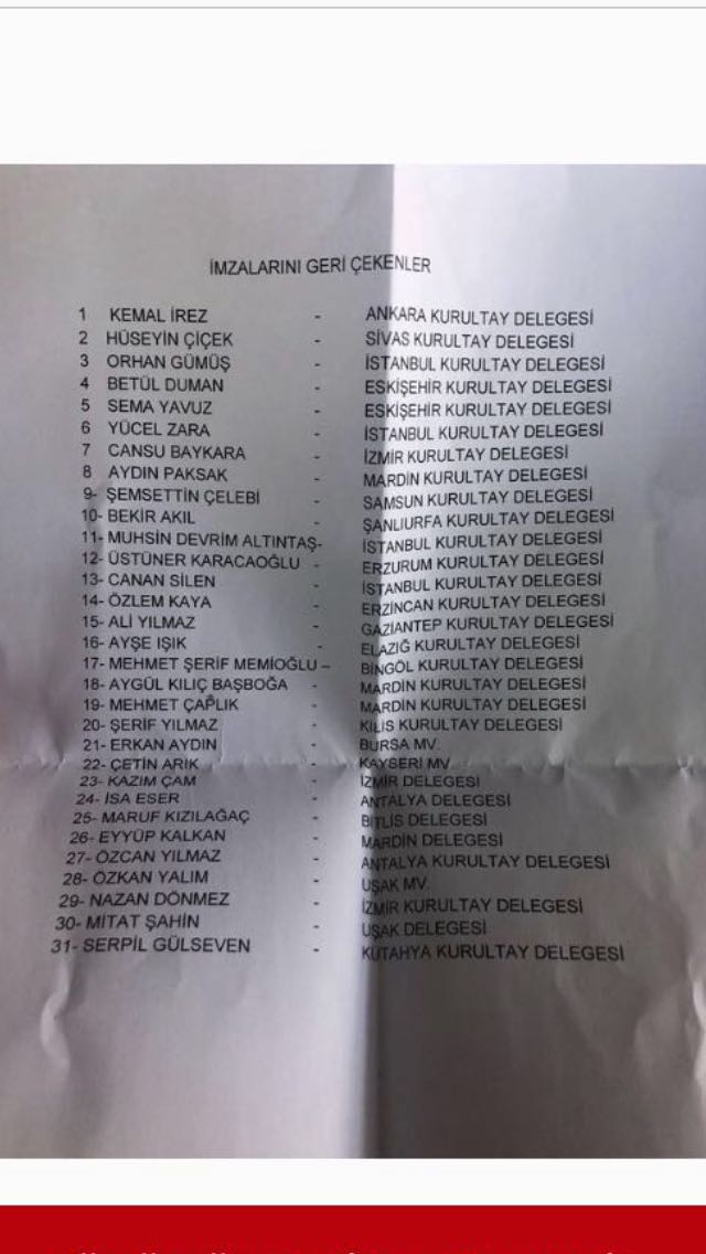 CHP Genel Merkezi imzalarını geri çeken 31 delegenin listesini açıkladı