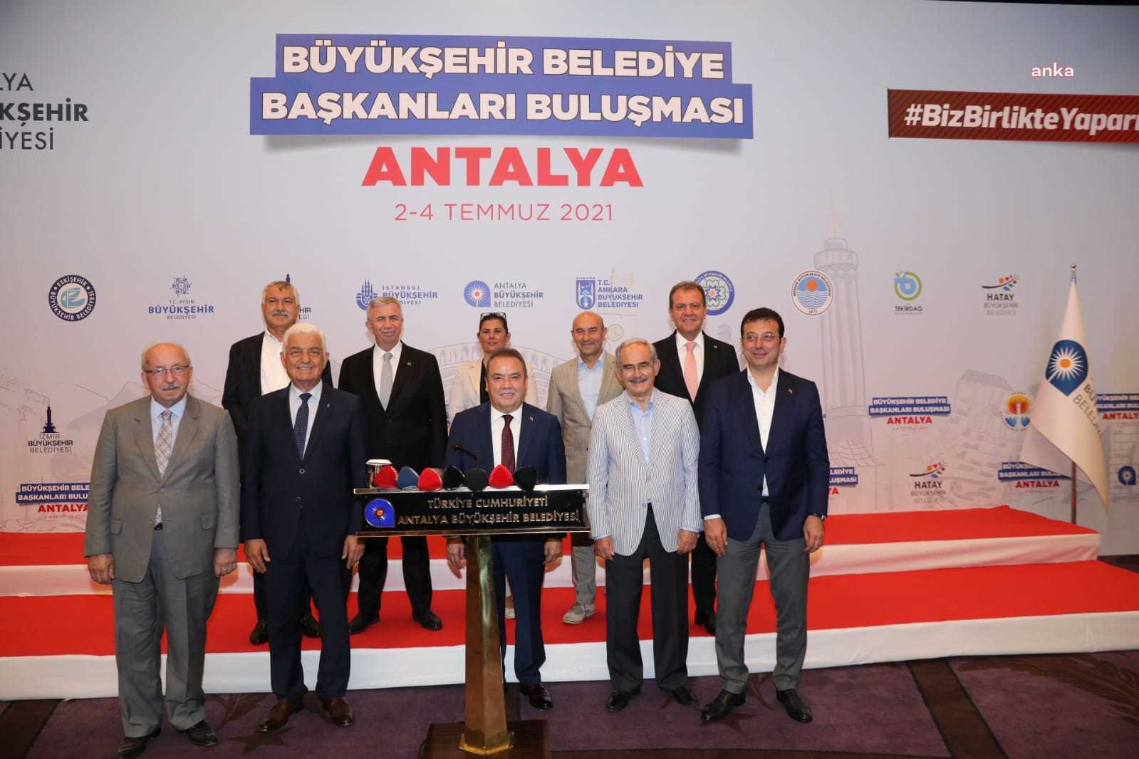 İstanbul Büyükşehir Belediye Başkanı Ekrem İmamoğlu, Ankara Büyükşehir Belediye Başkanı Mansur Yavaş, İzmir Büyükşehir Belediye Başkanı Tunç Soyer, Adana Büyükşehir Belediye Başkanı Zeydan Karalar, Eskişehir Büyükşehir Belediye Başkanı Yılmaz Büyükerşen, Aydın Büyükşehir Belediye Başkanı Özlem Çerçioğlu, Antalya Büyükşehir Belediye Başkanı Muhittin Böcek, Muğla Büyükşehir Belediye Başkanı Osman Gürün, Mersin Büyükşehir Belediye Başkanı Vahap Seçer, Tekirdağ Büyükşehir Belediye Başkanı Kadir Albayrak ve Hatay Büyükşehir Belediye Başkanı Lütfi Savaş; Antalya’da bir araya geldi.
