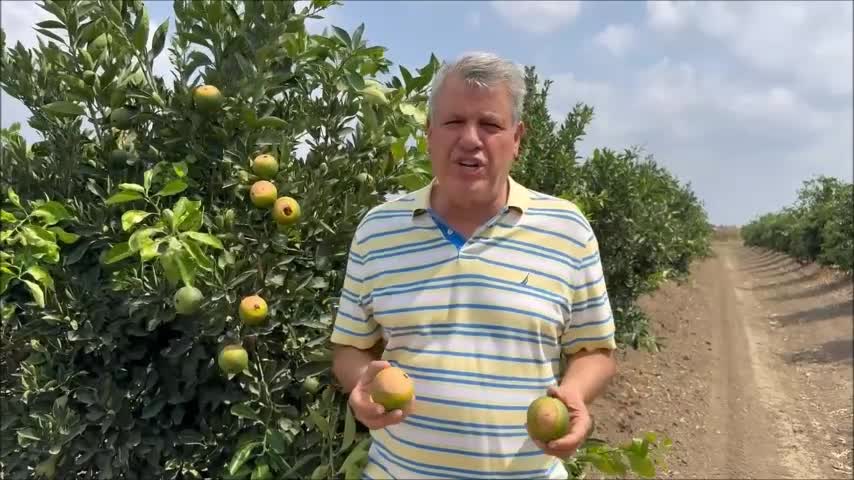*Şimdi narenciye bahçesinde durum görülüyor. Görüldüğü gibi aşırı sıcaktan dolayı portakallar yanmış, aynalama yapmış, adeta çürüyor" dedi.