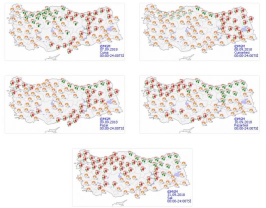 Parçalı ve çok bulutlu, sabah ve öğle saatlerinde yerel olmak üzere sağanak ve gök gürültülü sağanak yağışlı geçeceği tahmin ediliyor. Yağışların; sabah saatlerinden itibaren yerel olarak kuvvetli olması bekleniyor.