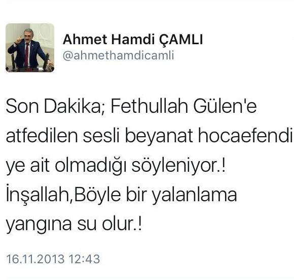 Ama kısa bir süre sonra Periscope yayının ön kameraya geçmesiyle o hesabın sahte olduğu ortaya çıktı. AKP Milletvekili ve Cumhurbaşkanı Recep Tayyip Erdoğan’ın eski şoförü Ahmet Hamdi Çamlı’nın, @yelizadeley adıyla sahte hesap açtığı ve o hesap üzerinden de Periscope yayını yaptığı anlaşıldı. Hesap bu durumun ortaya çıkmasının ardından kapatıldı.