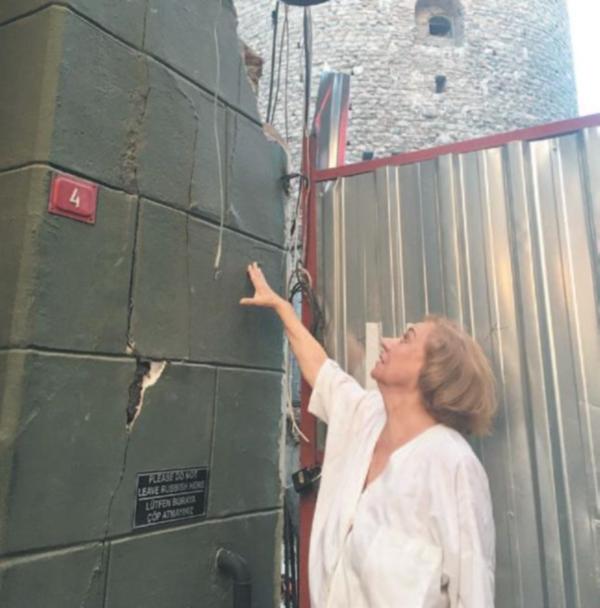 Galata Kulesi’ne yaklaşık 3 metre mesafede süren inşaat çevredeki binalara hasar verdi. Evinde derin çatlaklar oluşan tiyatro sanatçısı Gülsen Tuncer dava açmak için bilirkişiye başvurdu. Hazırlanan bilirkişi raporunda inşaatın Tuncer’in evine zarar verdiği ortaya çıktı.