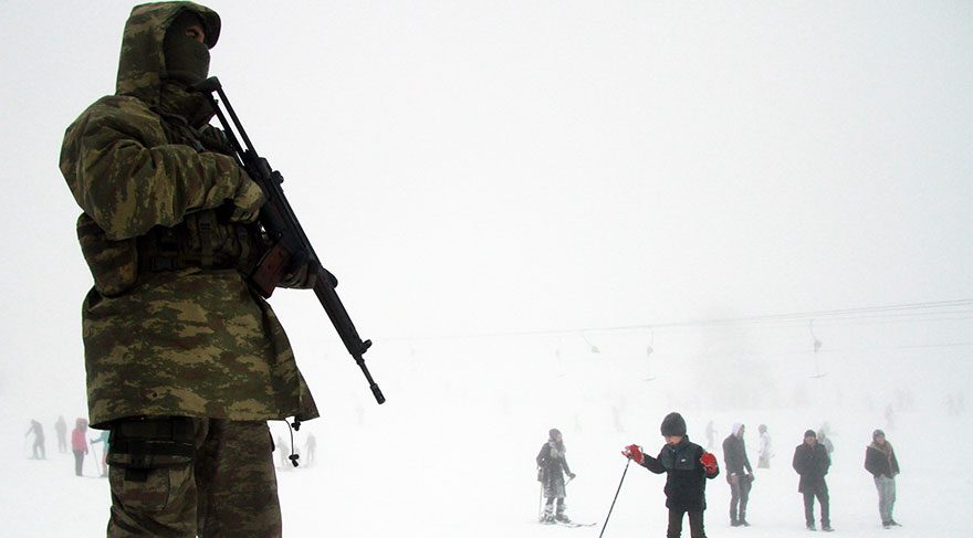 Kayak pistlerinde meydana gelen kazalarda ise JAK timleri anında müdahale ederek yaralıyı en kısa sürede sağlık ekiplerine ulaştırıyor. Jandarma Özel Harekat Timleri elleri tetikte kayak pistlerinde nöbet tutarak tatilcilere güven veriyor.