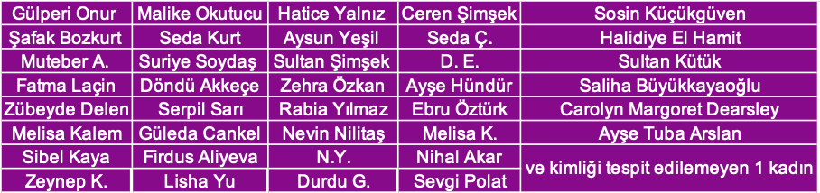 Öldürülen kadınların isimleri şöyle: