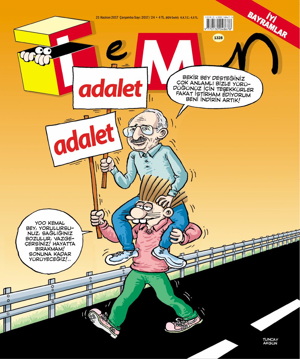 Leman mizah dergisi, CHP Genel Başkanı Kemal Kılıçdaroğlu'nun başlattığı adalet yürüyüşünü kapağa taşıdı.