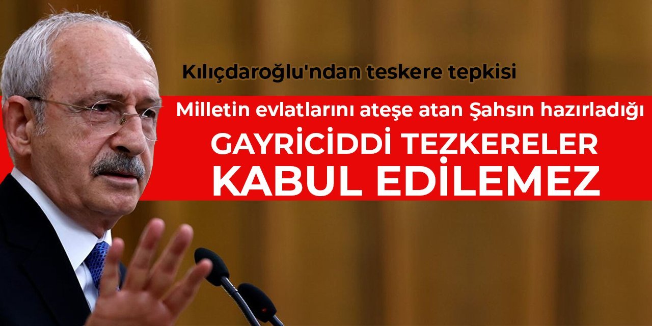 Kılıçdaroğlu, "Selvi Hanım ve ben, askerliğini er olarak yapmış oğlumuzun gururlu anne ve babasıyız. Kendi çocuğuna bedelli askerlik yaptırıp, milletin evlatlarını ateşe atan Şahsın hazırladığı gayriciddi tezkereler kabul edilemez. Tezkereye “Hayır!” diyeceğiz." ifadelerini kullandı.