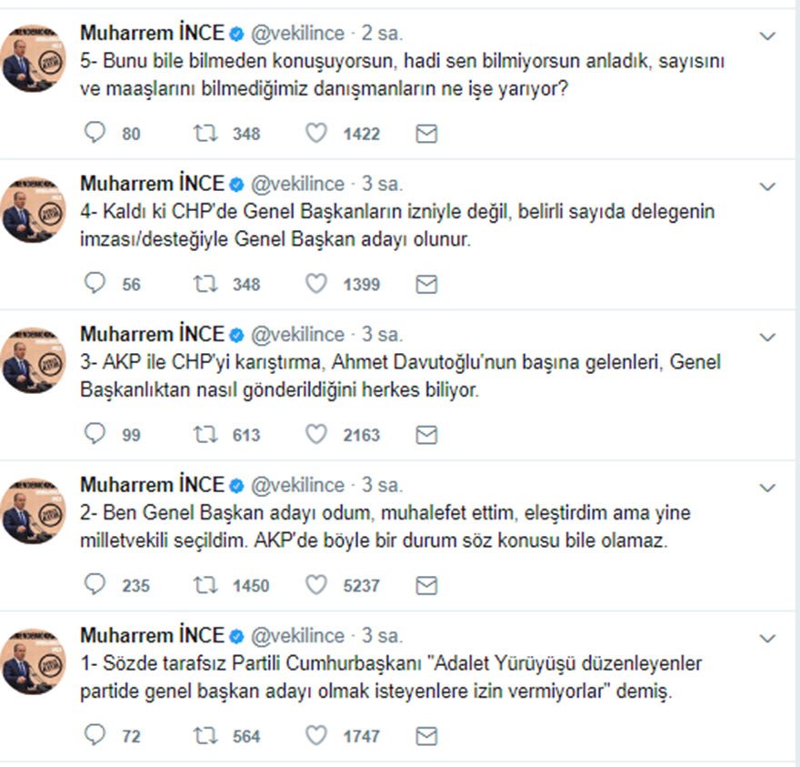 CHP’li Muharrem İnce sosyal medya hesabından 5 maddelik bir açıklama yaptı.
