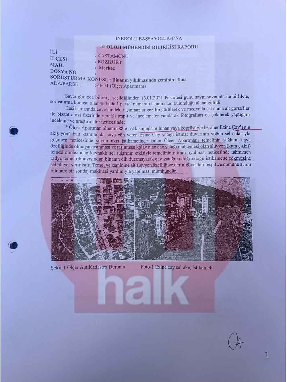 İnebolu Cumhuriyet Başsavcılığı'nın talimatı üzerine Jeoloji Mühendisi Hasan Kaya tarafından bilirkişi raporu hazırlandı.