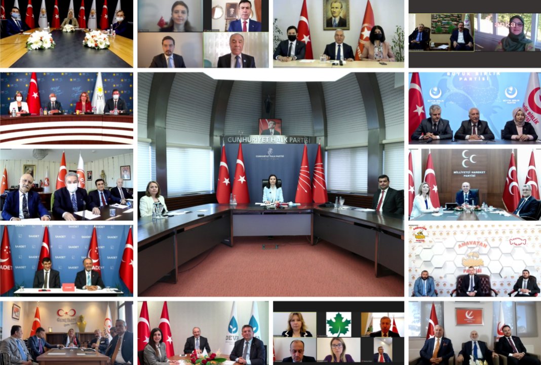 CHP Genel Başkan Yardımcısı Lale Karabıyık, CHP Parti Meclisi (PM) üyeleri Semra Dinçer ile Deniz Demir'in yer aldığı heyet, AKP, DSP, Vatan Partisi, HDP, İYİ Parti, BBP, DP, MHP, Saadet Partisi, ANAP, Genç Parti, DEVA Partisi, Gelecek Partisi ve Yeniden Refah Partisi heyetleri ile video konferans yöntemiyle bayramlaştı.