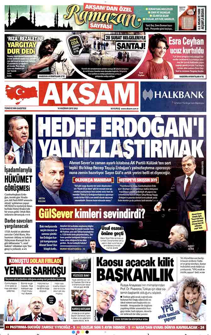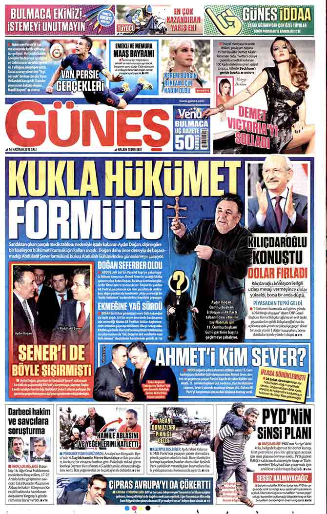 Güneş gazetesi ise kitabı yine Aydın Doğan’a bağlayıp Erdoğan’a karşı Abdullah Gül’ün parlatılmak istendiğini iddia etti. Güneş, kitabın yazarı Ahmet Sever’in paralel yapı ile ilişkili olduğunu da iddia etti. “Kukla hükümet formülü” manşeti ile çıkan gazete, “Doğan daha önce başaramadığı Abdüllatif Şener formülünü bu kez Gül üzerinden güncellemeye çalışıyor” ifadelerine yer verdi. Star gazetesi de Abdullah Gül’ün kullanılmak istenmesinden gördü.