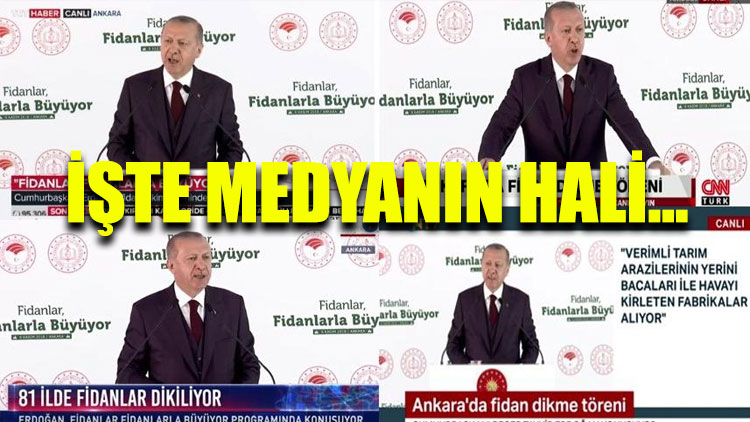 HDP dışında Meclis’te grubu bulunan bütün siyasi partilerin grup toplantılarını canlı olarak yayınlayan haber kanalları, CHP’nin toplantısı yerine Cumhurbaşkanı ve AKP lideri Erdoğan’ın Ankara’da gerçekleştirdiği “Fidan dökme töreni”ni ekranlarına taşıdı.