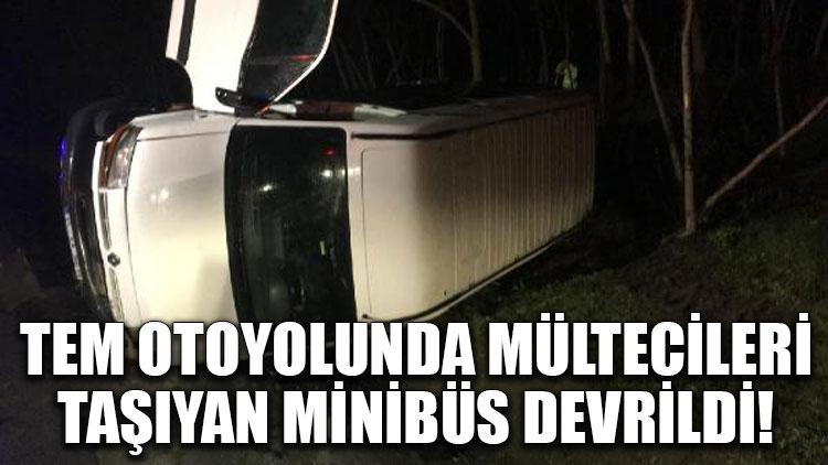 TEM otoyolunda mültecileri taşıyan minibüs devrildi!