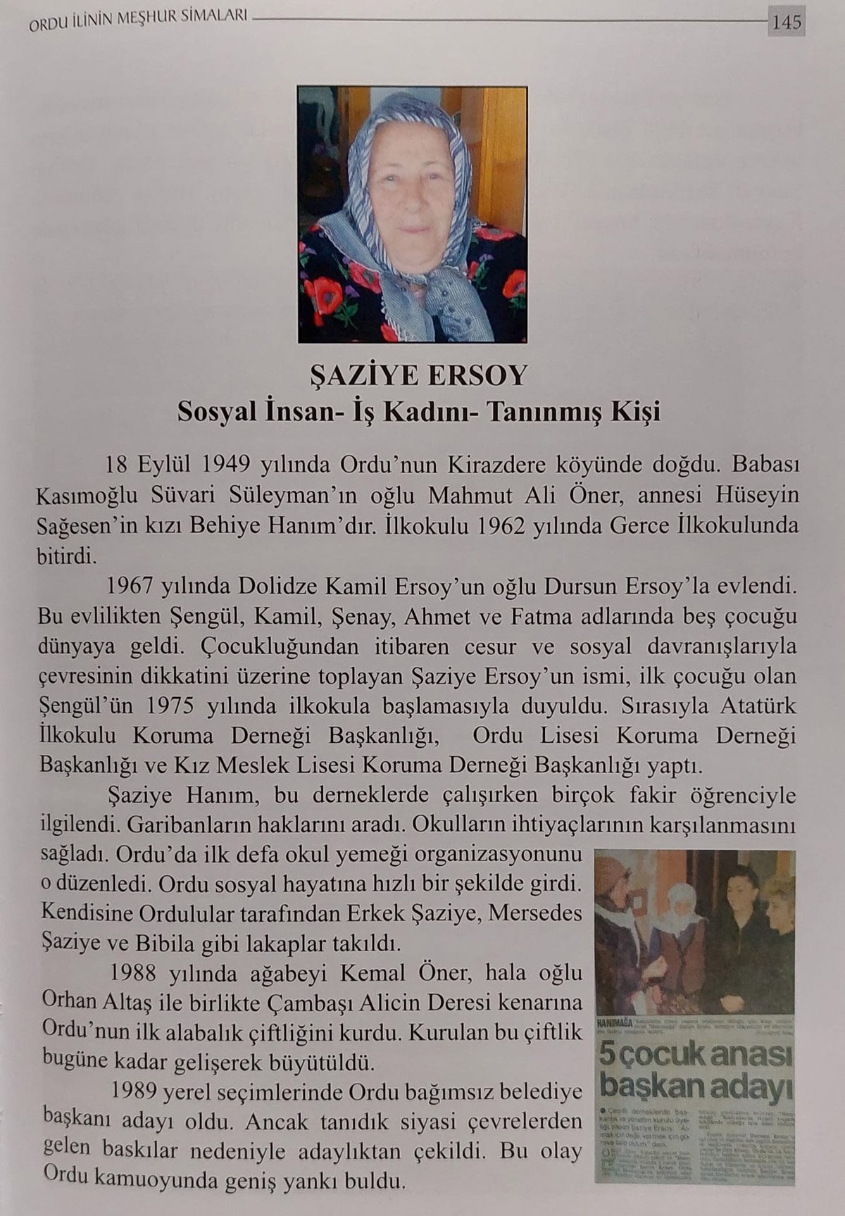 “Bu kitabı hazırlarken bölgeye kültürel anlamda hizmet edenlerin isimleri yazıldı. Kitaptaki Şaziye teyzem, bütün vakıflarda herkese yardım eden biridir. Annemin kuzeni rahmetli Namık Alkaş, büyük bir cami ve külliye yaptırdı. Kitapta eksiklikler olmuş olabilir. Terzi Fikri de (Fatsa eski Belediye Başkanı) girebilirdi. Bu bakanlığın resmi bir projesi. Amaç, Ordu'nun değerlerini bir kayıt altına almak, gelecek için örnek alınmasını sağlamak.”