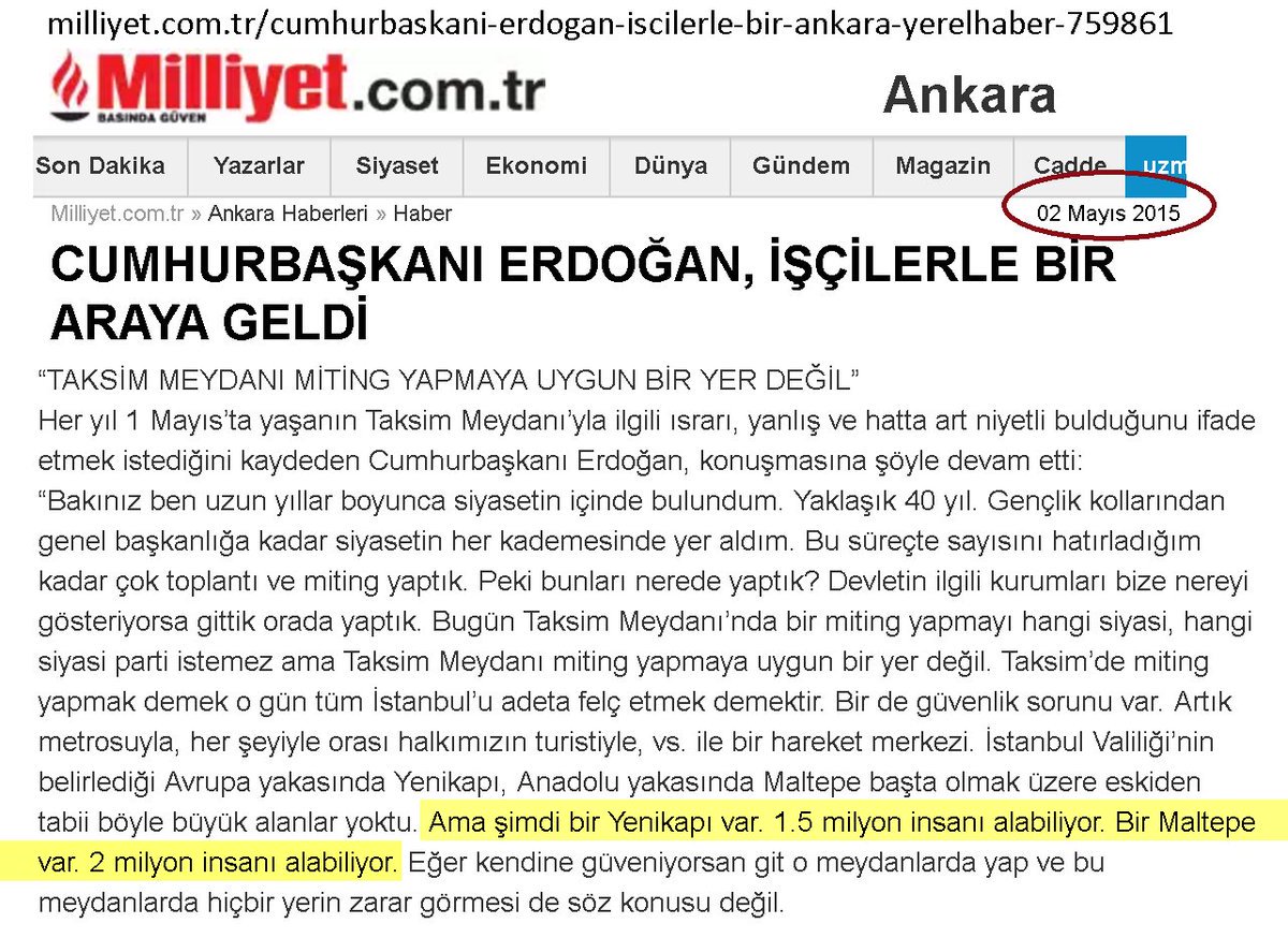 Yandaş medya da dün valilik tarafından yalanlanan bölümde yer aldı. Zira yandaş basın Erdoğan mitinglerinde yaptığı gibi, Ahmet Davutoğlu'nun Başbakanlığı dönemindeki mitinglerde de Maltepe alanında 2 milyon kişinin toplandığını yazmıştı.