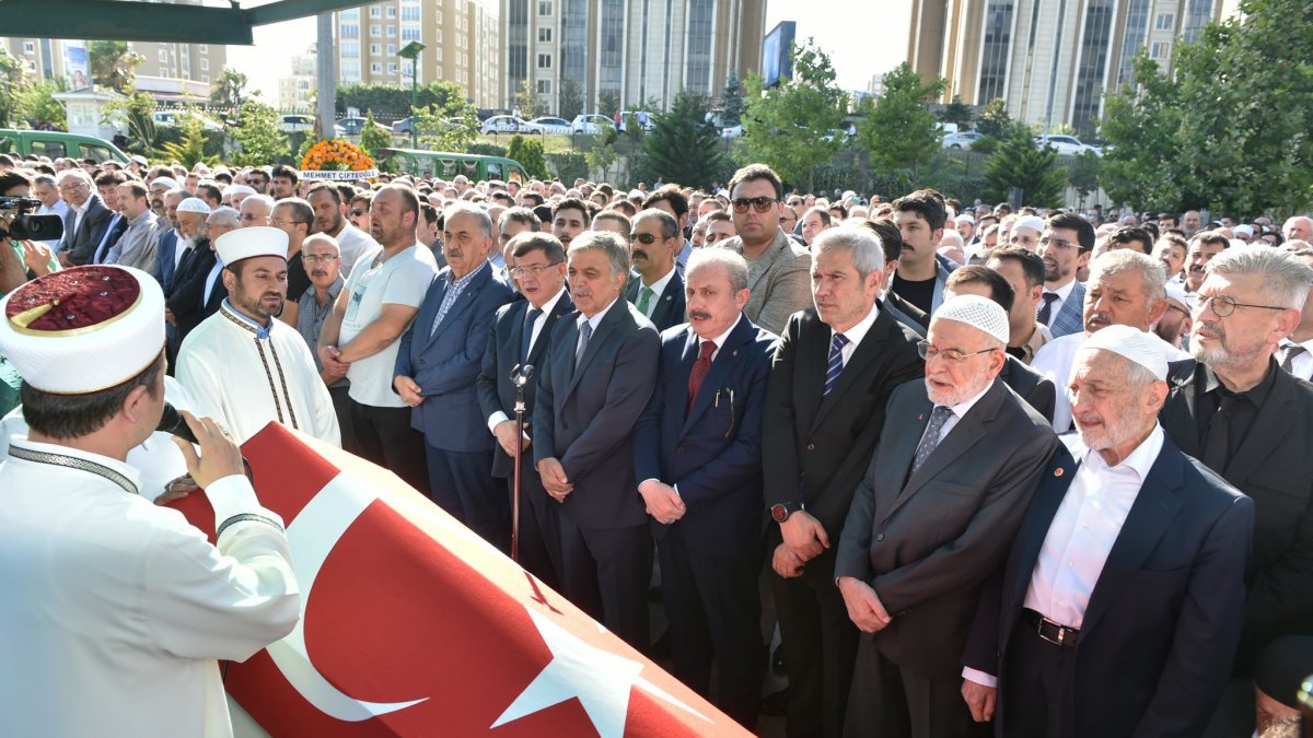 Cenazede; Abdullah Gül ile Davutoğlu'nun yan yana saf durduğu görüldü. Cenazede ayrıca; TBMM Başkanı Mustafa Şentop ile Saadet Partisi Genel Başkanı Temel Karamollaoğlu da yer aldı.