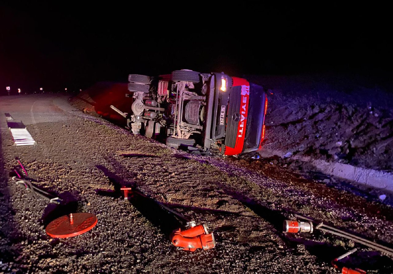 Yangına giderken devrilen itfaiye aracının sürücüsü öldü