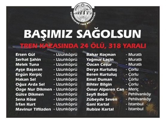 41 kişinin kaybettiği Hızlı Tren faciasında olduğu gibi!