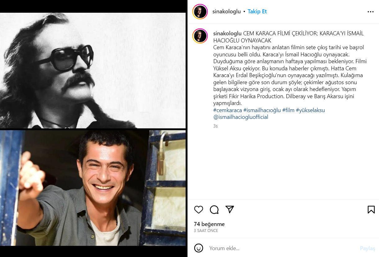 Anadolu rock müziğin efsane ismi Cem Karaca'nın hayatı film oluyor. Karaca'nın hayat hikâyesini ve müzik kariyerini konu alacak filmin başrol oyuncusu belli oldu.