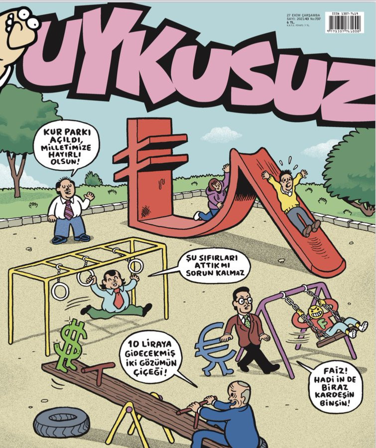 Haftalık mizah-karikatür dergisi Uykusuz, bu haftaki kapağına doları taşıdı.