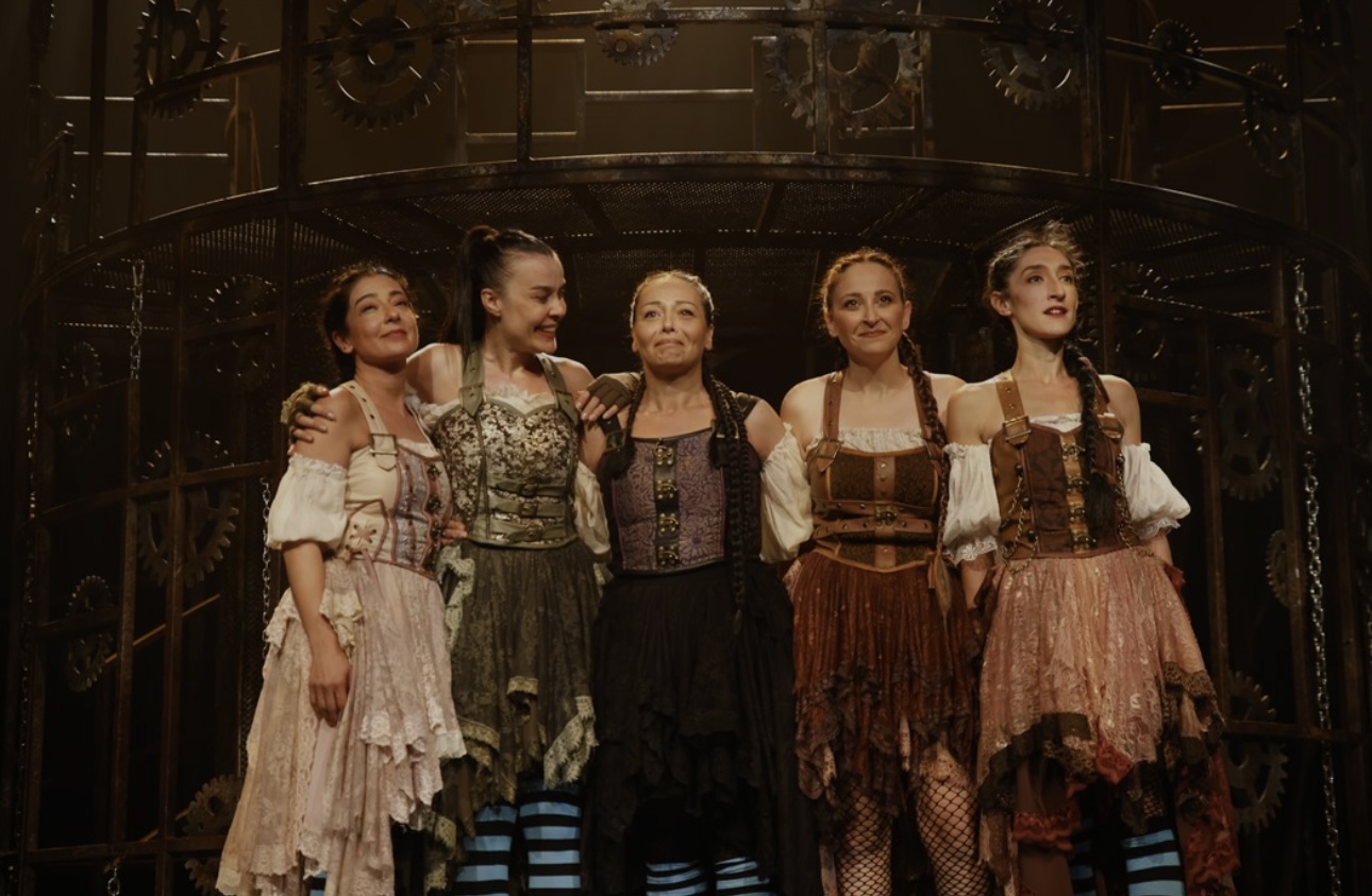 Oldukça titiz çalışılmış bir reji ile seyircisinin karşısına çıkan Lysistrata oyununda sahnede sürekli çoğalan beş kadın oyuncu var. Antik yunanın aksine yönetmen bu kez sahneye hiç erkek çıkarmayarak tersine bir dünyanın nasıl inşa edilebileceğinin mesajını vermiş. Kadınlar hakkında bir oyunda sahne, erkek rolleri için de kadınlara bırakılmış. Yaşlı kadınlar korosu metinden çıkartılmış. Yazarın kadınlar arasında kurduğu kast düzeni ortadan kalkmış. Metne yapılan eklemelerle, Aristophenes’in yazdıkları birbirine ustalıkla eklenmiş. Oyunun içinde oyun anlatısıyla seyirciye ‘‘size bir hikâye anlatacağız’’ diyen koronun, mavi çoraplı kadınların sahnedeki enerji ve uyumu tartışmasız çok etkileyiciydi. Oyunun yüksek ritminde, dakika şaşmadan canlandırdıkları karakterlerle oyun sonu alkışı sonuna kadar hakkettiler. Oyunculara tekrar döneceğim. Size biraz sahneden bahsedeyim. Metal yapılı, basamaklı, yuvarlak, iç içe geçmiş, döner mekanizmalı, yani Meyerhold sitili, konstrüktif bir dekorla oyuncular bütünleşmiş. Dekor tasarımı Hasan Yavuz’a ait oyunda, koreografi de titizlikle çalışılmış. Mizansendeki akıcılık, danslardaki uyum Sibel Erdenk’in koreografisi ile su gibi. Uzun zamandır sahnede görmeye hasret kaldığım yüksek enerji beni mutlu etti. Tek sorun oyuncuların bu enerjiyi kullanırken bağıra bağıra oynamalarıydı. Ama bunu bütün içinde bunu görmezden gelebilirim sanırım. Oyunun müzikleri Emin Serdar Kurutçu’ya ait. Oyununun önemli itici kuvvetlerinden olan müzikler ve sözler hem çok dinamik hem de Lysistrata’yı o günden bugüne bağlayan köprüler. Kostüm (Medina Yavuz Almaç), aksesuar kullanımı, makyajlar yönetmenin kurmak istediği dünyanın parçaları. Basit bıyık, üstü süpürgeli miğfer, zırhlı, kırmızı pelerinler, mavi çizgili çoraplar, gözlükler… Tabii asıl marifet bunları ustalıkla, hiç aksamadan, sahne üzerinde giyip çıkartan ve saniyeler içinde kadınken erkek savaşçıya dönenen oyuncularda. Fulya Ülvan, Lysistrata karakteri ile güçlü, kararlı, yönetici ve biraz erkeksi yanıyla sahnede tüm ağrılığı ile hissedildi. Myrrhine / Probulos rollerinde Ebru Aytürk, kocasını baştan çıkarttığı sahne ile unutulmaz bir performans sundu. Lampito / Kinesias rollerinde Sevi Demirçivi erkek hali olan Kinesias da tartışmasız çok daha başarılıydı. Klenonike / Lykaon / Spartalı Çocuk rollerinde Çiğdem Aygün, Maicon / Ankhises / Spartalı Sözcü rollerinde Melodi Özkazanç enerjileriyle seyirciden beğenileri topladılar. Ansambl oyunculukta tüm oyuncular, oyun boyunca birbirlerine hep doğru oyunculuk verdiler, seyirci olarak biz de aldık kabul ettik. Hepsine kocaman alkışlar. Rejinin parçalarından ışık da efektler de yönetmenin kurduğu evren içinde gayet uyumluydu. Hareketli parçaları olan dekor sayesinde sahne kesintiye uğramasa da sahne geçişleri için ışığın karardığı anlara aslında hiç gerek yoktu. Oyunu anlık kesintilere uğratıyordu. Peki bu kadar iyi işin içinde yeri gelmişken sormak istediğim bir şey var. Devlet tiyatroları kurumsal olarak kötü afiş yapmak konusunda neden bu kadar ısrarlı? Benim gibi düşünen kaç kişiyiz acaba?