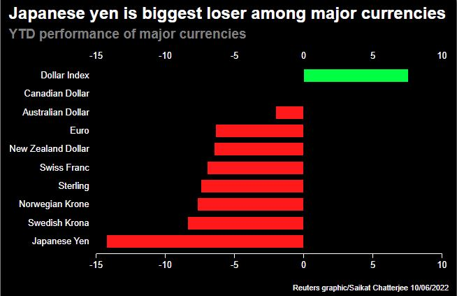 FED’in faiz politikası nedeniyle dünya ekonomisinde dengeler şimdiden değişti. Aşağıdaki grafikte güçlü paraların yılbaşından bu yana performansları var. Görüleceği gibi dolar değer kazanırken, Euro dahil tüm paralar ciddi oranda değer kaybetmiş.
