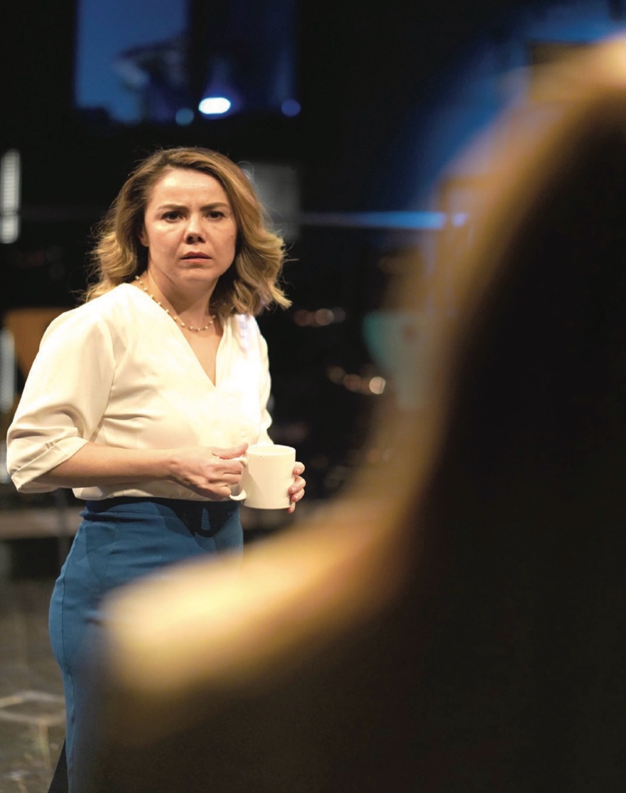 Oyunun ikinci fazı oldukça rahatsız edici ve gerilimleri yüksek sahnelerle kreşendo ritminde ilerliyor. Bu anlara eşlik eden başarılı müzikler Barış Manisa’ya ait. Dijital görsellerle ve ışıkla desteklenen atmosfer değişiklikleri oldukça dozunda ve mütevazi. Haklılık ve haksızlığın el değiştirdiği anlar, çok yakın mesafedeki oyunculardan seyirciye hızlıca geçiyor. Özder’in sahnede yalnız kalıp seyirciye gözünü diktiği anlar, ‘‘ölü bir çocuk’’ üzerine söyledikleri, sahnedeki masanın üzerindeyken anlattıkları seyirciyi perişan ettiği anlardan bazıları. Onun dramatik olanı kırdığı ve alaycılığı ile seyirciyi gülümsettiği anları yakalamak çok keyifli. Öğretmene soyadıyla değil de adıyla seslendiği seçilmiş anlardaki eziciliği, saldırganlığı, şefkati, dürüstlüğe verdiği değeri, anneliğini sorguladığı anlar yetişkin dünyamıza hiç de uzak değil. Corryn anneliğine ait duyduğu pişmanlıkları, artık geri dönülemez bir noktadayken sorgular. Başkaları için belki zaman hala vardır ama ‘‘doğru annelik’’ nedir?