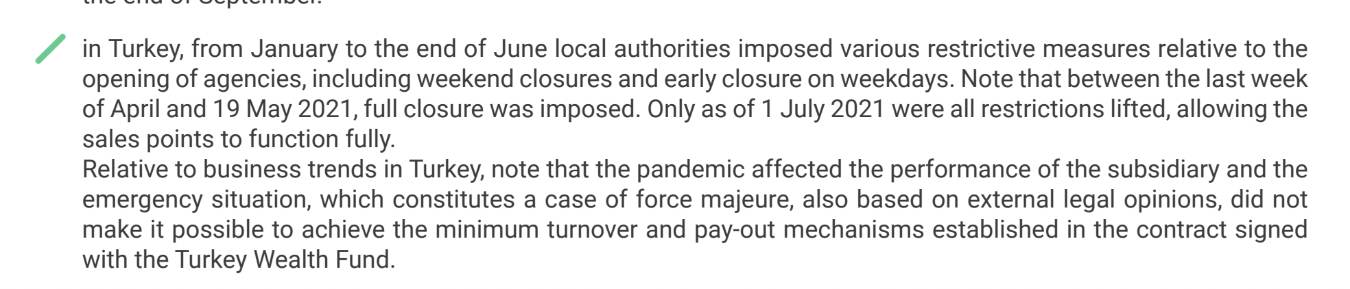 Bu konuda Varlık Fonu ya da Demirören cenahından herhangi bir açıklama yapılmadı. Ancak Sisal’in finansal raporunun 130. sayfasında bu konu ile ilgili bir ipucu var. Sisal, “Covid-19 nedeniyle biz Varlık Fonu ile yapmış olduğumuz sözleşmedeki minmum hasılat ve ikramiye ödeme mükellefiyetlerimizi yerine getiremedik. Ama pandemiden kaynaklı bu acil durum, dışarıdan aldığımız hukuki görüşlere göre mücbir sebep (force majeure) teşkil ediyor” diyor. Anlaşılan o ki Covid mücbir sebebe sokulmuş ve cezadan yırtılmış. Nitekim şirketin bilanço bilgilerine de bakıldığında böyle bir ceza ödemesi veya ayrılmış bir rezerv de görünmüyor.