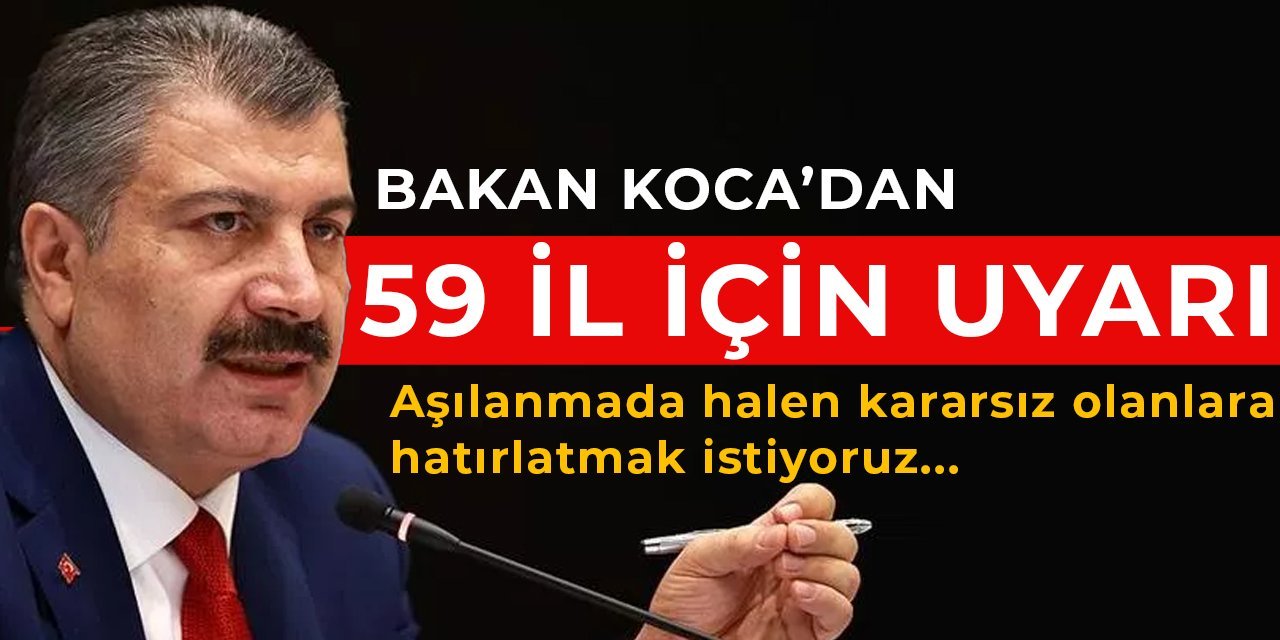 Sağlık Bakanı Fahrettin Koca sosyal medya hesabından yaptığı açıklamada, "İlk doz aşılanmada kısa sürede başarı elde ettiği halde, ikinci doz oranı %65’in altında kalan 8, %80’in altında kalan 59 ilimiz var. Aşılanmada halen kararsız olanlara hatırlatmak istiyoruz: İnsanlık aşıda istekli. Aşılanma oranı düşük ülkeler, aşı tedarik edemeyen ülkelerdir." ifadelerini kullandı.