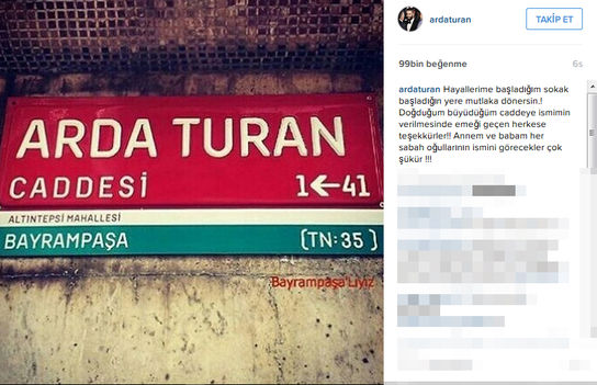 Bayrampaşa Belediyesi, geçtiğimiz Temmuz ayında Arda Turan'a büyük bir jest yaparak, doğup büyüdüğü Ordu Caddesi'ne milli futbolcunun adını vermişti.