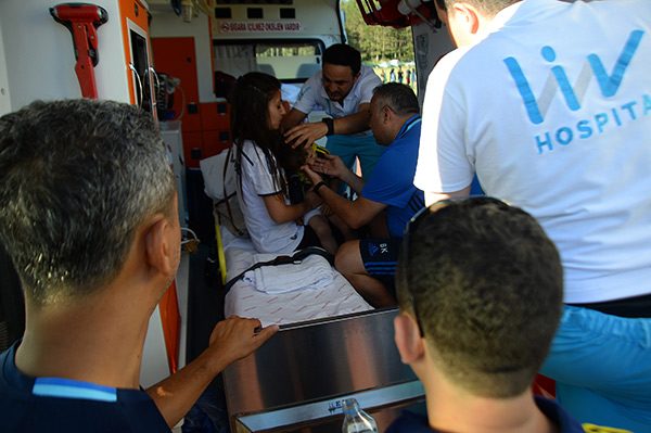 Kunduracıoğlu tedbir amaçlı 4 yaşındaki çocuğun düştüğü kolunu kontrol edip, çeşitli kontrollerin ardından önemli bir sağlık sorunu olmadığına karar verdi. Ambulanstan indirilen çocuk aile ile birlikte bir süre daha idmanı izleyip evine gitti.