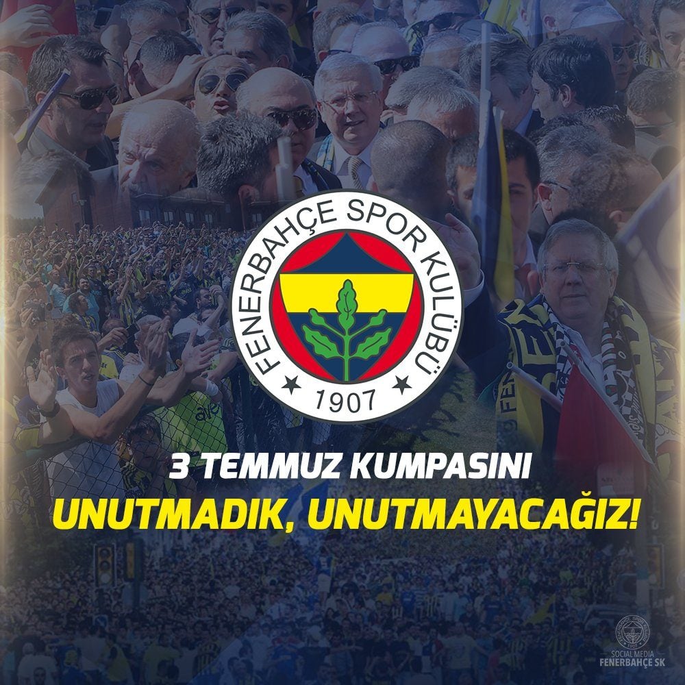 Fenerbahçe, 3 Temmuz sürecinin 6. yıldönümü sebebi ile sosyal medyadan paylaşımda bulundu. Sarı-lacivertli kulübün armasının yer aldığı paylaşıma, “3 Temmuz, kumpasını unutmadık, unutmayacağız” notu da eklendi.