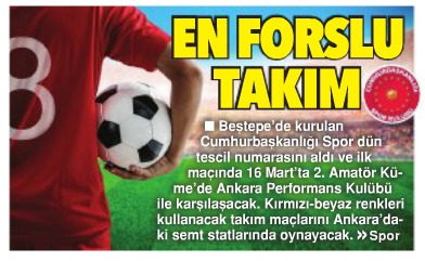 Cumhurbaşkanı Recep Tayyip Erdoğan'ın talimatı ile dün Cumhurbaşkanlığı Spor Kulübü kurulduğu ve Ankara 2. Amatör Küme’de mücadele edeceği ortaya çıkmıştı. Türkiye Futbol Federasyonu resmi sitesinde de kulübün kuruluş detayları yer almıştı.